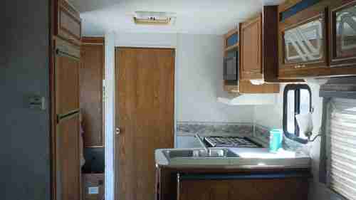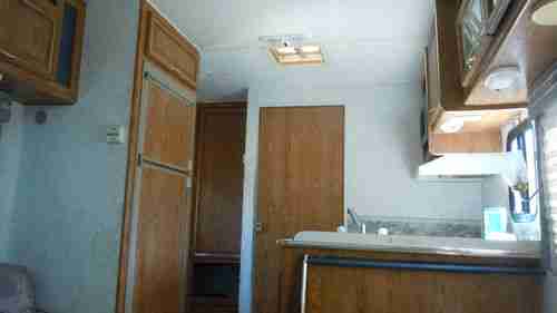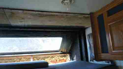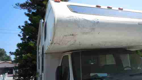 Let me start by saying that this RV will required some vision, and some very good cleaning, although I was told that the family would be cleaning it this weekend. Cosmetically this RV is in rough condition mostly within its interior. Some things are broken off, like some cabinet doors, handles, etc. The main concern been that at one point the front portion of the RV roof was leaking and they had to do some internal surgery (see photos). The leak has been contained, and the roof was treated with a 15 year warranty job. Don't look too pretty but it's functional now.