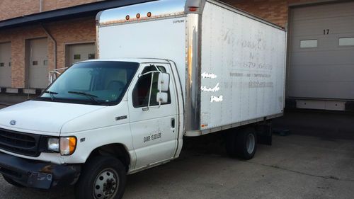 FOR SALE 1997 FORD ECONOLINE 350 14 BOX TRUCK (AUTOMATIC ,AC ,P/S, (113687 ORIGINAL MILES )RUNS GOOD.NEW PLUGS AND FILTERS ,NEW ROTORS AND PADS REAR DRUMS AND SHOES ,NEW UPPER AND LOWER BALL JOINTS AND RADIUS ARMS BUSHINGS ,NEEDS TIRES ALL AROUND AND W ALIGNMENT ALSO HAVE A SMALL HIT IN FRONT BUMPER DRIVER SIDE (TRUCK NEEDS TLC)