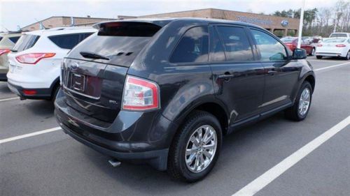 This 2007 Ford Edge 4dr FWD 4dr SEL SUV features a 3.5L V6 DURATEC 35 6cyl Gasoline engine. It is equipped with a 6 Speed Automatic transmission. The vehicle is Carbon Metallic with a Charcoal Leather interior. It is offered As-Is, extended warranty is available. - Air Conditioning, Cruise Control, Tinted Windows, Power Steering, Power Windows, Power Door Locks, Power Mirrors, Leather Steering Wheel, Leather Shifter, Power Drivers Seat, Clock, Tachometer, Digital Info Center, Tilt Steering Wheel, Steering Wheel Radio Controls, Driver Airbag, Passenger Airbag, Side Airbags, Keyless Entry, Security System, ABS Brakes, Traction Control, Rear Defogger, Fog Lights, Intermittent Wipers, AM/FM, CD Player, 18 inch Chrome Wheels, Leather Interior Surface,, Compass And Temperature Display, Vanity Mirrors, Side Curtain Airbags, Child Proof Door Locks, Roll Stability Control, Overhead Console, Carpeted Floor Mats, Aux. Audio Input, Cup Holders, Center Arm Rest, Tire Pressure Monitor, Rear Spoiler, Remote Trunk Lid, Center Console, 12v Power Outlet, Premium Sound, Rear Spoiler, Premium Alloy Wheels, Luxury Seats, Compass And Temperature Display, Rear Wipers -