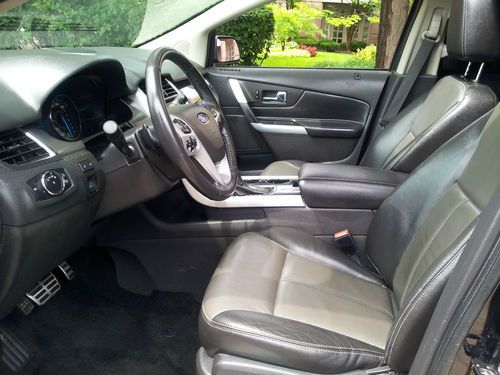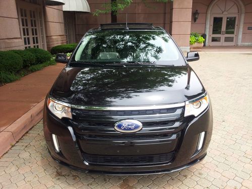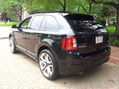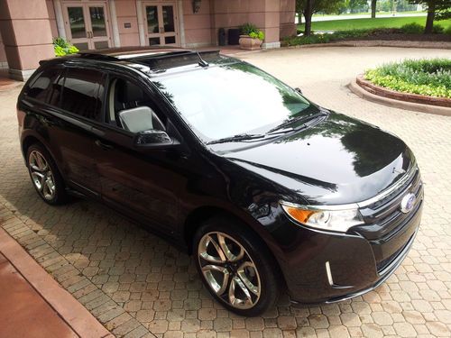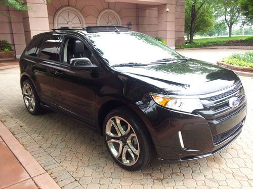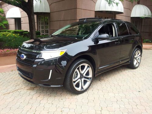 YOU ARE VIEWING A GORGEOUS BLACK TUXEDO MATCHED WITH A BLACK leather INTERIOR 2011 FORD EDGE SPORT IN TIP-TOP SHAPE.MOON ROOF..Beautifully outfitted PREMIUM leather seats on all rows....Dual heated front seats.......BLIND SPOT SENSORS ALERTS YOU IF SOMEONE IS IN YOUR BLIND SPOT ..............AWD (ALL-WHEEL-DRIVE).......VOICE ACTIVATED TURN BY TURN NAVIGATION SYSTEM DISPLAYED ON A GORGEOUS 7 INCH MEDIA SCREEN which includes precise pin point accuracy for go anywhere directions.....................3.7 LITER V6 ENGINE IN SUPERB CONDITION...... 30,022 miles..................SYNC GUIDED TURN BY TURN NAVIGATION SYSTEM DISPLAYED ON A GORGEOUS 7 INCH MEDIA SCREEN WHICH INCORPORATES ALL AND IS ONLY PROVIDED THROUGH SYNC ..........THIS SYSTEM ALSO PLAYS MP3'S/REWINDS LIVE MUSIC/PAUSES LIVE RADIO AND IS QUITE POSSIBLY THE MOST ADVANCED MEDIA SYSTEM OUT THERE. (THIS IS A VERY VALUABLE OPTION AND SHOWS WHY LINCOLN MOTOR CO IS LEADING THE INDUSTRY IN INNOVATION AND TECHNOLOGY......................ICE COLD A/C.......AS STATED ABOVE, THIS MEDIA SCREEN DISPLAYS TURN BY TURN NAVIGATION WHICH IS PROVIDED THROUGH SYNC SERVICES..........REAR VIEW BACKUP CAMERA SYSTEM ( DISPLAYS LIVE VIDEO UP DIRECTLY ON YOUR MEDIA SCREEN).............REAR BACK UP SENSORS WHICH ALERT YOU WHEN BACKING UP TO AN OBJECT BY SOUNDING OFF AN ALARM......................SIRIUS XM TRAFFIC RADIO....................................DUAL POWER HEATED/ COOLING BLACK LEATHER SEATS.......................DUAL ZONE ELECTRONIC CLIMATE CONTROL....................TIRE PRESSURE MONITORING SENSORS (ALERT YOU WHEN TIRES ARE A BIT LOW ON AIR)..................POWER HEATED MIRRORS................POWER FOLD DOWN SECOND ROW SEATS ........... 22" CHROME WHEELS MATCHED WITH PREMIUM PERFORMANCE TIRES FOR MAXIMUM PERFORMANCE.....................LED FOG LAMPS....................................6 SPEED AUTOMATIC TRANSMISSION WITH TIPTRONIC OPTION GIVING YOU THE ABILITY TO CONTROL TRANSMISSION SHIFTING THROW YOUR STEERING WHEEL.........STEERING WHEEL CONTROLS.........CRUISE CONTROL................ .....VEHICLE ANTI-THEFT.......KEY LESS ENTRY KEYPAD LOCATED ON DRIVER'S DOOR..........TOO MANY OPTIONS TO LIST ON THIS VEHICLE...JUST A GORGEOUS VEHICLE IN/OUT.........RUNS/DRIVES AMAZING...............LINCOLN REALLY HIT IT OUT OF THE PARK WITH THE 2011 FORD EDGE SPORT..................BEST PREMIUM SUV ON THE MARKET...........THIS MKS RUNS AND DRIVES ABSOLUTELY POSITIVELY PERFECT IN EVERY WAY AND IS VERY RESPONSIVE AS THE 3.7 LITER V6 CYLINDER ENGINE POWER PLANT PROVIDES A POWERFUL YET SMOOTH PUNCH ALL WHILE PROVIDING TREMENDOUS ALL-WHEEL-DRIVE CAPABILITIES................THESE TRUCKS ARE REALLY AMAZING AND THIS ONE IS NO EXCEPTION--VERY SHARP IN/OUT CONDITION................