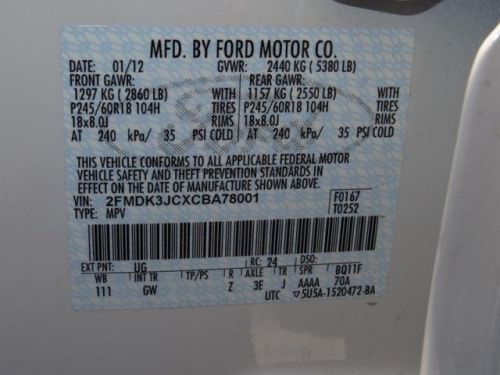 VIN (Vehicle Identification Number): 2FMDK3JCXCBA78001