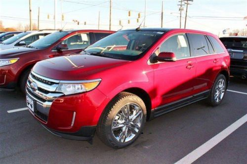 This 2014 Ford Edge 4dr 4dr Limited FWD SUV features a ENGINE: 2.0L I4 ECOBOOST 6cyl Gasoline engine. It is equipped with a 6 Speed Automatic transmission. The vehicle is Ruby Red Metallic Tinted Clearcoat with a Medium Light Stone Leather interior. It is offered with a full factory warranty. - Air Conditioning, Cruise Control, Tinted Windows, Power Door Locks, Power Passenger Seat, Tachometer, Digital Info Center, Homelink System, Tilt Steering Wheel, Steering Wheel Radio Controls, Side Airbags, Keyless Entry, Security System, ABS Brakes, Traction Control, Dynamic Stability, Rear Defogger, Intermittent Wipers, 20 inch Chrome Wheels, Leather Interior Surface -