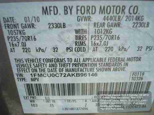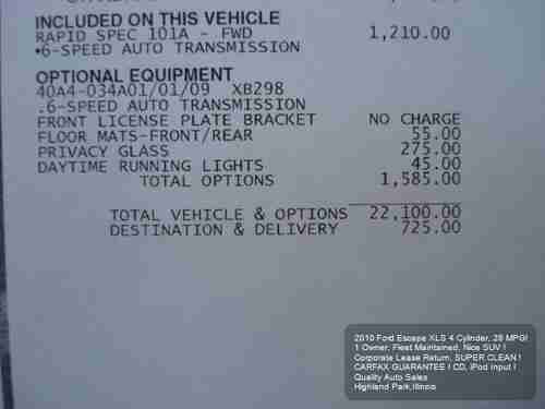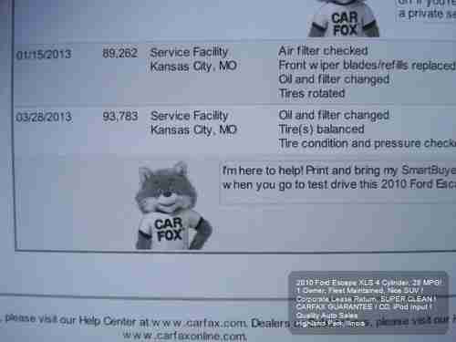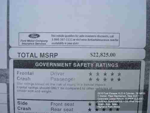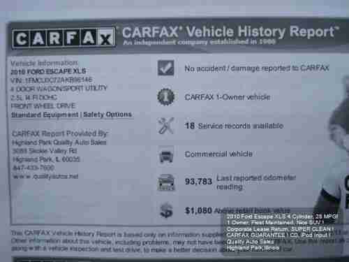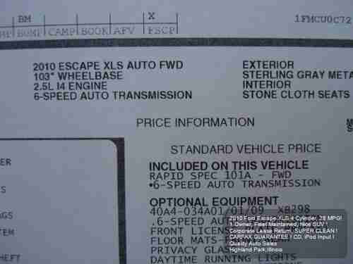2010 Ford Escape 1 Owner Corporate Lease Cd/ipod Input 4 Cylinder Carfax Cert ! on 2040-cars