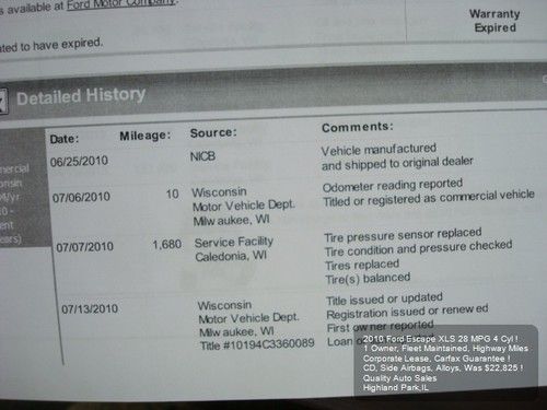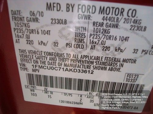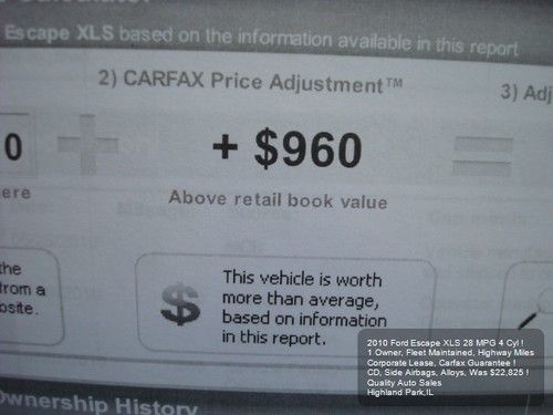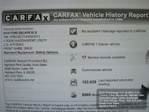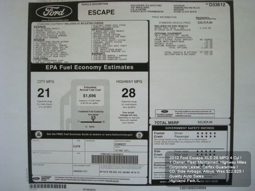 2010 Ford Escape 1 Owner Corporate Lease Cd/ipod Input 4 Cylinder Carfax Cert ! on 2040-cars