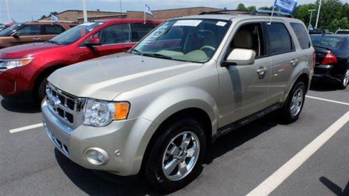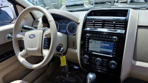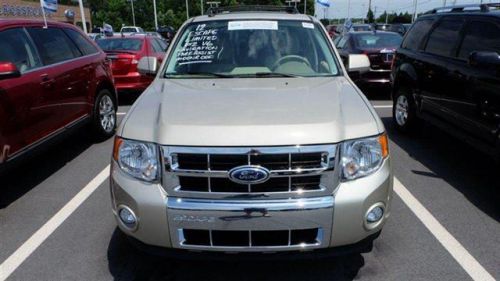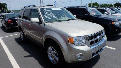 This 2012 Ford Escape 4dr FWD 4dr Limited SUV features a 3.0L V6 FLEX FUEL 6cyl Gasoline engine. It is equipped with a 6 Speed Automatic transmission. The vehicle is Gold Leaf Metallic with a Camel Leather interior. It is offered with the remaining factory warranty. - Air Conditioning, Dual Zone Climate Control, Cruise Control, Tinted Windows, Power Steering, Power Windows, Power Door Locks, Power Mirrors, Leather Steering Wheel, Power Drivers Seat, Power Passenger Seat, Heated Seat, Roof Rack, Clock, Tachometer, Digital Info Center, Tilt Steering Wheel, Steering Wheel Radio Controls, Moonroof, Driver Airbag, Passenger Airbag, Side Airbags, Keyless Entry, Security System, ABS Brakes, Traction Control, Rear Defogger, Fog Lights, Intermittent Wipers, AM/FM, CD Player, Factory Premium Sound System, 17 inch Chrome Wheels, Leather Interior Surface,, Premium Alloy Wheels, Cup Holders, Luxury Seats, Tire Pressure Monitor, Exterior Keypad Entry, Carpeted Floor Mats, Compass And Temperature Display, Premium Sound, Navigation System, Center Console, Bluetooth, Parking Sensors, Rear Wipers, Overhead Console, Remote Trunk Lid, Front Heated Seats, Side Curtain Airbags, 12v Power Outlet, SYNC- Voice Activated System, Compass And Temperature Display, Vanity Mirrors, Center Arm Rest, Aux. Audio Input, Heated Mirrors, Reverse Camera, Child Proof Door Locks -