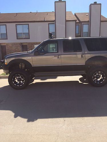 For sale an immaculant condition Ford Excursion 4X4 limited edition with a 7.3l Diesel motor. It has all leather seats with no tears or rips.. it has seat warmers built in and a brand new flip out Clarion CD/DVD player. It also has a rear DVD player which= 20 inches( also brand new). The exhaust= 2 inch downpipe all the way back. I also has an EDGE programmer installed along with a cold air intake. Paint is in immaculant condition with all rocker panels sprayed recently with linex bedliner plus 2 inch fender flares also sprayed with linex plus both bumpers. Has two light bars( one on roof and one on front end with 4 KC lights on each. It has a custon Fuel grille guard on it also sprayed with linex. It has a 8 inch lift kit on it with dual shocks in front that aids in running 38 inch Mickey Thompson ATZs with great amount of tread left on them. It has 20 X 12 Fuel dune wheels which were purchased 3 months ago. This all comes equipped with a 7.3l diesel motor with 127,000 miles on it..... This is truly a beautiful Beast