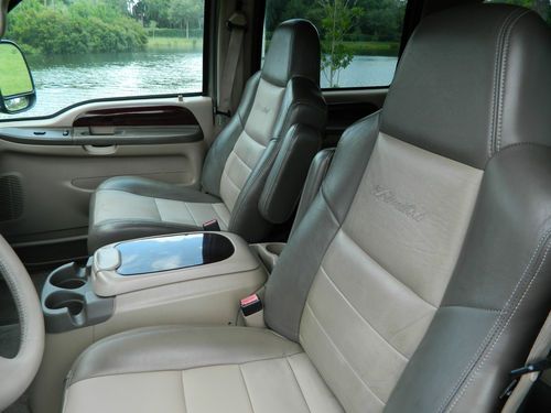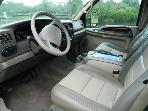This 02 Ford Excursion 7.3 Power Stroke Turbo Diesel Limited is in awesome condition. Very low mileage for year with 4 new tires, beautiful two-tone leather interior and full power options. This truck is a one of a kind and very hard to find. It runs and drives perfectly and looks almost new. Winning bidder responsible for all sales tax, tag & title fees and $250. dealer fee. Buyer to pay a $1000. deposit through paypal within 24 hrs of auction close and pick up vehicle in 7 days. Buyer arranges and pays for own shipping. Happy Bidding!