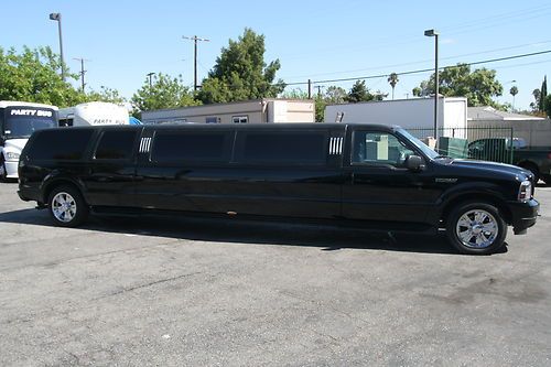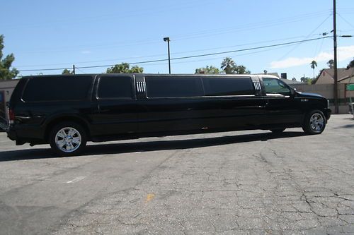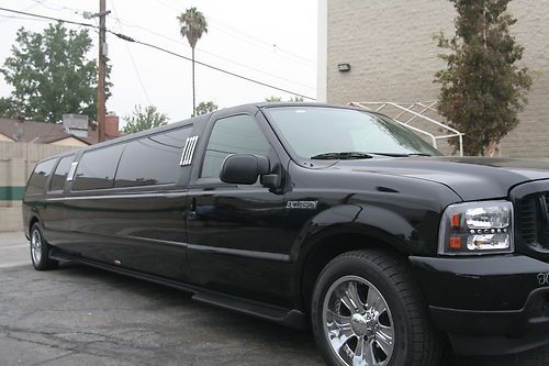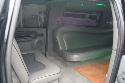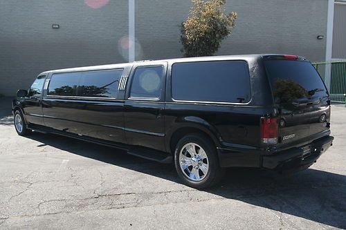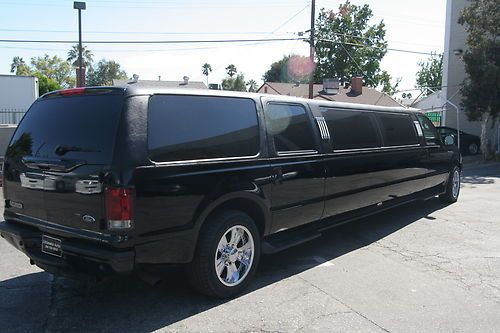 2004 Ford Excursion Limousine 140" Stretch by Tiffany Coach, has 58,580 miles on it SOLD AS IS. Long window package, gray and black two tone J seat interior, rear VIP seating section. Stainless steel fiber optic ceiling with star gazer, color changing fiber optic halo lights, color change led under the bar. White lacquer bar top with color changing star gazer back, new hardwood floor, privacy divider with stargazer. Brand new 20" TV Monitors, new DVD, Cd Player with Ipod connection, new coach lights, Crystal rocks and flutes, custom 20" alloy wheels. It has two front brand new tires on it and rear two has 75% of the tire remaining. There is no damage evident on this vehicle. The engine on this vehicle is very strong v10. This vehicle has no known defects. The mileage represented on this vehicle is accurate. This vehicle has a smooth shifting transmission. All power equipment is functioning properly. Overall, this vehicle's exterior is clean. Extra clean interior. Absolutely no rips, odors or abuse. If you have any questions please feel free to contact me at (818)968-8505. Thank you for your interest.