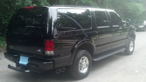 Up for sale is my very well maintained Ford Excursion Limited. Truck has many new parts including new projection beam/L.E.D. headlamps with 10,000K H.I.D.'s, L.E.D.s in running boards, rear backups and all interior lights. Also 10 new plugs and coils and fuel pump, all O.E.M. parts an installed by local dealer, Dana Ford Lincoln Mercury. Truck was ONLY SERVICED WITH FULL SYNTHETIC OIL AND ONLY 93 OCTANE FUEL, HAVE ALL THOSE RECEIPTS TOO..... Both locking hubs changed to Mile Marker Hubs and New Painted Rear Bumper with backup sensors. All work was performed within last year from Feb. 2012 to Present. I have all service records and receipts. Everything WORKS and truck is in GREAT CONDITION. Any questions feel free to call 917-974-6650. Thanks, Jerry.....HAPPY BIDDING!!!!!!