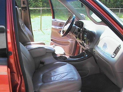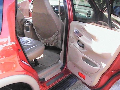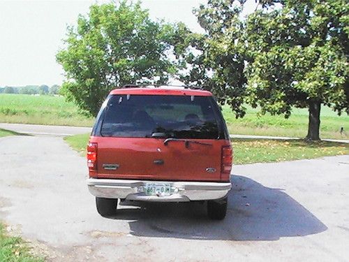 Your bidding on a 1998 Ford Expedition Eddie Bauer Edition. 5.4L Triton, 2WD, Third Row Seating and Air. The A/C blows ice cold. I purchased this truck with 120,607 miles on it. The title states Actual mileage and Flood Vehicle however, I have owned the truck for 6 years. When I purchased it I did the car facts and found that the title was branded(salvage) at 58,000 miles in 1999. I have had no problems with this truck other than the usual oil change, spark plug coil changes. It is a great looking and running truck. The driver side seat is worn in the usual spot (as seen in pics) and the drivers side power window works if you hit the panel (I believe there is a connection issue). I bought this truck for my wife in 2007 and since then our family doesn't have the need for a large vehicle anymore. I don't want to take the time to make adjustments to fix the power windows but, a motor for the power windows on E-bay is around $50.00. Even though the title shows "flood vehicle" the previous state is Kentucky and the undercarriage is perfect and there is no rust on any part of the truck. Therefore the flood damage was probably fresh water. The truck has been garage kept and oil changed every 3000 miles. The paint is in good condition still shines nice but, has a few dings that are considered normal for the age. It has adjustable luggage racks and factory tow package. The third row seat can lay down or be taken out for more cargo room. The middle seats fold down and has a two drink holder in the middle. The stereo is factory with 10 CD changer from factory and works great and the stereo can be tuned or volume changed from the rear seat. It has two designated charge outlets one in the front next to the cigarette lighter and one behind the driver on the console, It will need tires and one speaker in the far back passenger side is blown but not noticeable under normal volume conditions. This truck is For sale locally and I reserve the right to end auction early without notice.