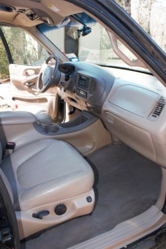 1999 Ford Expedition Eddie Bauer edition. Has third row seating, tow package, has 93,XXX miles. 5.4 liter Triton V8, power windows, Power locks, Just had brand new shocks, power steering pump and fluid, sway bars, put on with receipt to prove it. Upper A arms are also new. Very cold AC. This expedition is very mechanically sound. I Would feel very confident taking this on a long trip because it is such a reliable vehicle. Has some scratches and minor dents. Just passed inspection and just renewed registration. We have title. Ebay message for any questions you may have. We have this price very low for the amount of mileage it has on it. Pick up in Mount Enterprise Tx. or close by. $100 paypal deposit required and prefer the rest of the cash at sale. Pros; Drives well Mechanically sound Very reliable 8 person seating Very Cold A/C leather seating tinted windows solid engine solid transmission Tow Package Eddie Bauer Edition recent oil change with synthetic oil non-smokers no pets allowed in expedition clean title Cons; heat works but needs new box that switches it from AC to Heater fuse just went out on right window No four wheel drive missing one seat belt receiver radio doesn't work well needs speedometer light (priced on ebay for $8) minor dents and scratches will need one new tire soon other tires have a little life left in them |