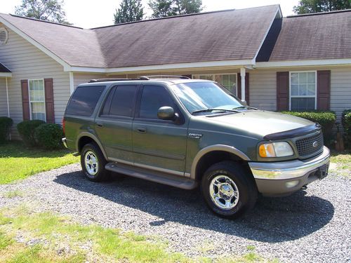 For your Consideration is a Nice/Dependable 2000 Ford Expedition Eddie Bauer Edition 4x4....Triton 5.4 V8 Runs Excellent & Automatic Shifts Very Smooth(i was told it was rebuilt around 175k but dont have any paperwork,either way it shifts out smooth)....ICE Cold AC Front & Rear, Power Moonroof,Power Leather Seats,3rd Row Seating it seats 8 people! Factory Stereo with CD Changer,Cruise,Tilt,Power Tinted Windows, Power Locks,Power Mirrors,Keyless Entry with Remote....Has Cooper Tires(about 40% tread left) rides out smooth....Quiet exhaust,good brakes,ect...NC Emissions Inspection Valid thru 08/2014...Nice Factory Paint,has few scratches but 100% Rustfree & Never Wrecked....All the options work....recent Battery & Alternator...Again it Runs/Shifts & Rides Good!!! Spare tire is missing....Clean Clear NC Title in hand......... TERMS: Full Payment due Cash in person within 5 days of auction end....