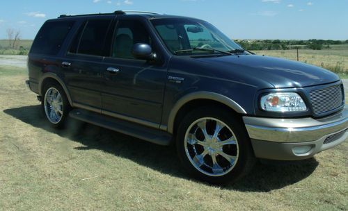 For Sale 2001 Ford expedition Eddie Bauer RWD by dealer. Good used condition, NO Warrenty. Runs and drives. Body is clean and has minor scratches. NO large dents. See attached pictures. Leather seats good condition. Some creases. See attached pictures. Has custom wheels. Rear entertainment center. Alpine stereo system. 22 inch wheels and tires. Aftermarket grill and lights, and tow package. Very nice used vechicle. We have driven this and it is a great car. Previous owner did alot of aftermarket and upgrades to this. Must see to believe. Western Auto Sales Indiahoma OK