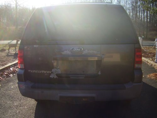 selling a 2003 ford expedition xlt fully loaded package and everything works , with 190,000 miles , suv runs and drives fine but does have a check engine light on , and trans shifts kind of slow or delayed , i drove this vehicle 100 miles on the highway and drove fine , going up hills it was kind of slow shifting , i have not had it checked out , this is the way we got this vehicle , my guess it would need a trans relay of some sort from what i have been told , i dont think trans is bad since it does shift thru all gears , interior is in great shape and condition no rips or tears in any seats , exterior is in good shape as well only rear tail gate paint is peeling see pics ,tires are in good shape have about 75% life left on all 4 , has third row seat and a stock tv , overall it is great shape for the year , if i dont end up selling this vehicle i will fix trans issue and keep it for myself that how good of good condition its in ,i have described vehicle to the best of my knowledge and selling it in as is condition no warrenties implied , if you have any questions please do ask before you bid , if you do not have CASH to buy please do not bid , if you have zerofeedback please contact us before bidding or your bid will be retracted , we must hear from winning bidder within 24 hrs of auction ending and picked up within 3 days of auction ending , highest bidder wins vehicle