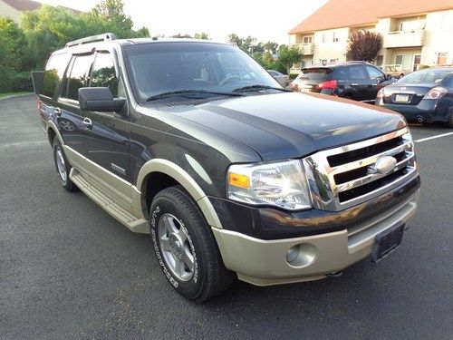 BEAUTIFUL 2007 FORD EXPEDITION EDDIE BAUER 4X4 WITH 8 CYLINDERS 5.4L GASOLINE ENGINE AND AUTOMATIC TRANMISSION WITH ONLY 221K MILES IN GREAT CONDITION.HAS BEAUTIFUL TWO COLOR LEATHER INTERIOR,DUAL CLIMATE CONTROL,COLD AC,POWER SEATS,HEATHED + AIR CONDITIONING SEATS,6 DISC MP3 AND MUCH MUCH MORE.VERY CLEAN INSIDE AND OUT.MECHANICALLY TIS SUV IS IN GREAT CONDITION.THE ENGINE RUNS PERFECT AND AUTOMATIC TRANSMISSION SHIFTS VERY SMOOTHLY.HAS VERY GOOD TIRES ALL AROUND.VERY DEPENDABLE AND ROAD WORTHY VEHICLE.JUST TURN THE KEYS AND GO ANYWHERE.DON'T MISS IT !!! THIS IS A VERY GOOD SUV !!! THIS IS A NO RESERVE AUCTION AND THIS SUV MUST BE SOLD TO THE HIGHEST BIDDER !!! This vehicle is being SOLD AS-IS, where is with no warranty, expressed written or implied.The seller shall not be responsible for the correct description, authenticity, genuineness, or defects herein, and makes no warranty in connection therewith. No allowance or set aside will be made on account of any incorrectness, imperfection, defect or damage. Any descriptions or representations are for identification purposes only and are not to be construed as a warranty of any type. It is the responsibility of the buyer to have thoroughly inspected the vehicle, and to have satisfied himself or herself as to the condition and value and to bid based upon that judgement solely. The seller shall and will make every reasonable effort to disclose any known defects associated with this vehicle at the buyer's request prior to the close of sale. Seller assumes no responsibility for any repairs regardless of any oral statements about the vehicle. Terms & ConditionsA $125.00 processing fee will be added to the total value of the auction.This is a buyers responsibility to make all transportation arrangements.Please don't bid if funds are not available at the time of bidding. Pennsylvania buyers must pay sales tax and tag fees. Out-of-state buyers are responsible for their own taxes in their own states.FULL PAYMENT MUST BE RECEIVED IN 3 DAYS !!! WE ACCEPT CERTIFIED BANK CHECK OR BANK TO BANK WIRE TRANSFER !!! NO PAY PAL !!!