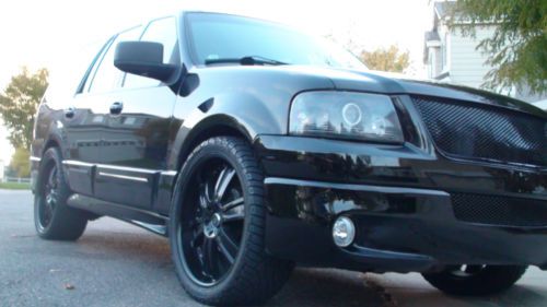 Very clean unique head turner, no dents no dings. Driven less than 11k miles per year, put on by one owner. There are no Expeditions like this one, looks good from any angle as the pictures show. Vin provided at request, clean Carfax. All books and owners manuals, two sets of keyless entry key fobs. All wheel drive or 4x4 with just a electronic button shift. K&N cold air intake, Eibach springs (for better ride quality). The Panasonic head unit puts out 70x4 watts to upgraded speaker system. Brand new driver cushion and cover (original had a tear). The third row has never even been used, it stays folded down. Not just any cheap set of wheels and tires, very rare Cooper All-Terrain tires over 24" Lorenzo Wheels. Truck also comes with the original wheel and tires that are NEW and UNUSED! HID headlights-Led tail lights. New starter and complete tune-up at 100k miles. Brand new fuel pump $900.00 was installed 200 miles ago (with receipt). All service records from Ford Dealership. Ford inspected and certified! No problems, no issues.