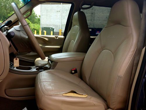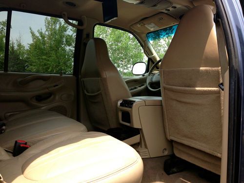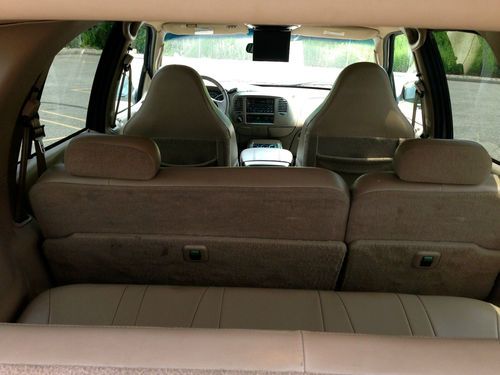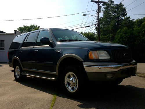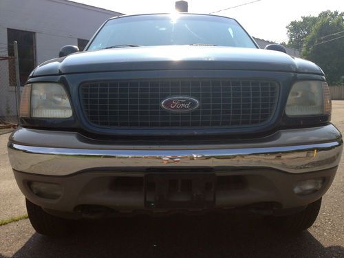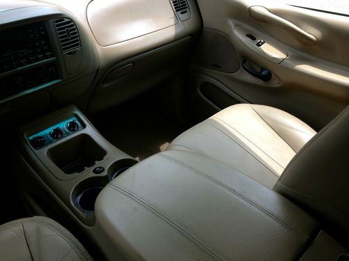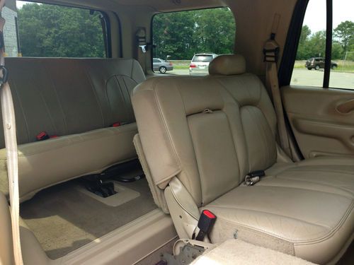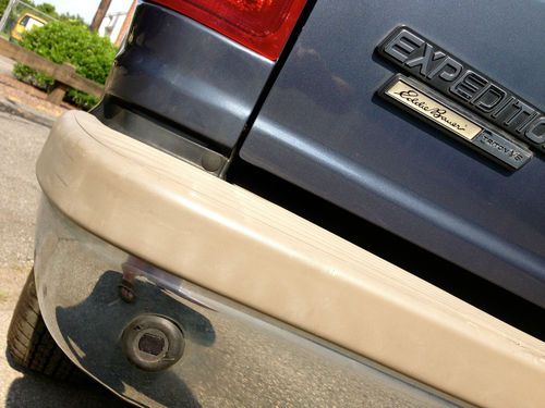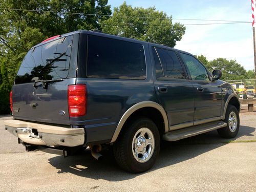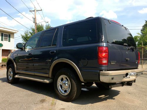 Here is a 2001 Ford Expedition Eddie Bauer with 3 rows of leather seats, and all the goodies including dual climate control, rear T.V dvd and vhs video, as you can see this SUV looks very nice and has had a pretty good up keep from what i can see, please keep in mind it is a used car and there is some wear and tear for the year but nothing that will effect the safety or integrity of the car. Mechanically you can’t fault the car as it runs and drives like a dream with no known mechanical issues, with 0 leaks on around or under the car anywhere the trans shifts perfect and the 4x4 functions as it should & the tires are like new as are the brakes and exhaust it really feels and looks like a beauty going down the road. The ac is cold and all the options work fine. it also has a factory class 3 tow hitch. The body is in very good condition with no dents, dings or ugly marks, and very nice original paint with a high gloss this one looks great from any angle for its age. The interior is genuine tan leather, with 1 rip on the drivers seat, as seen in picture i did price it out and $150. is the cost if it were to be repaired otherwise the dash and headliner are in excellent shape as is the cargo area, so if your looking for a SUV big enough to haul the whole family, tow the boat or trailer or simply wanted a extra vehicle here it is. remember this is a used vehicle and not new and the sale is going to be a no reserve auction so last bidder is winner thanks for looking and good luck.