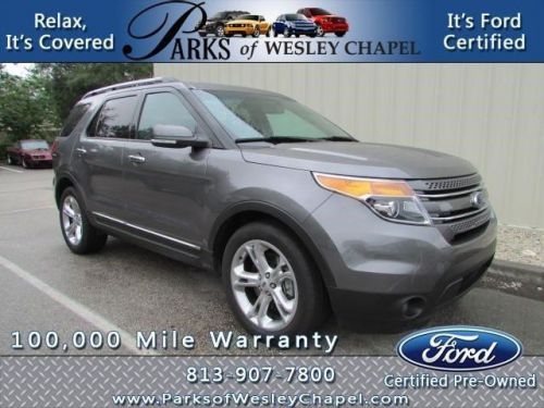 *** LIMITED *** CLEAN CARFAX *** ONE OWNER *** FACTORY CERTIFIED 100K MILE WARRANTY *** SYNC WITH MYFORD TOUCH *** REAR VIEW CAMERA *** SONY 12 SPEAKER AUDIO SYSTEM *** INTELLIGENT ACCESS WITH PUSH BUTTON START *** REMOTE START *** STERLING GRAY FINISHED OVER CHARCOAL BLACK LEATHER INTERIOR *** Right SUV! Right price! Parks Ford of Wesley Chapel means business! If you've been longing for just the right 2014 Ford Explorer, well stop your search right here. This is the ideal SUV that is guaranteed to fit your needs. Climb into this fantastic Ford Explorer, knowing that it will always get you where you need to go, on time, every time. At Parks Ford of Wesley Chapel, we are pleased to be your true "full service" dealer for the Tampa Bay area. Whether you are searching for New/Used/Certified inventory, world class service, collision center, or friendly straight forward financing, we can help! We pride ourselves on having an excellent reputation, just check out our reviews.