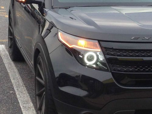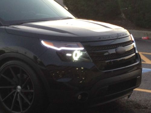 graphite -Tires: Pirelli Scorpion Zero Asimmetrico 285/35/22-Winter -Tires: BF Goodrich 285/35/22-Summer -H & R lowering springs(no longer installed, but will come with sale) -Tuner-Livernois Motorsports 93 high boost-3Bar map(plus 2 other custom octane tunes) -AirAid CAI -170* thermostat -3 bar map sensor -pre-gapped plugs -Full LED interior- including license plate -Custom One Off headlights- Retro fitted Bixenon projectors, with LED strip running lights/amber blinker switchback, LED Halo, Black out housing, LED backlit "explorer" on internal housing. -custom LED projector fog lights -weather tech digital floor mats -matte black wrap-door handles -custom Billet foot pedals -Wilwood big brake kit-W4A-caliper and 14.24 rotors -6617 EBC brakes DP4054R -Livernois Motorsports corsa cat back -Livernois Motorsports Catted down pipes -Rx Catch can and clean side fill cap with steal lines(not installed, comes with sale) -custom billet badge 3.5L twin turbo -color matched antenna shark fin -vinyl wraped door handles(matte black) -Custom matte pearl graphite painted ford and sport emblems(front and back) -front window tint -custom USB mount in driver pillar with nexus7 mount/torque Pro -AccuAir management with E level, I level with custom show quality tank display in wheel well -dual DVD in headrests -JL HD900/5 amp -JL C5 5x7 coaxials-rear doors -JL C5 5x7 components-front doors -JL W3 stealth box in back -Audio control LC8 -JL wiring -Sound deadening throughout