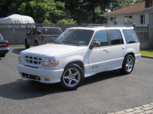 This is an extremely rare 1998 Saleen Explorer XP8. As you may already know approx. 125 of these models were built between 1998-2000. This particular XP8 was number 47 in 1998. This Xp8 has standard features Carbon Fiber Inlaid Steering wheel, Carbon Fiber Externat Side View Mirrors, 18" Magniesium Saleen Speedline Wheels, Saleen Aero Body Kit, Saleen Racecraft Suspension, And it is one of Six trucks built in 1998 with the ultra rare Saleen/Recaro Leather Interior. It is also the only Saleen Explorer built with the Saleen/Recaro Leather Interior and 2WD. Making this truck one of one for the 1998 Model Year. This particular truck was just repainted within the last six months and all new graphics applied. (almost 6,000.00). It has 255/55/18 Sumitomo Tires all around in very good shape (approx. 5,000 miles on them) This truck has the 302 Ford engine and it runs beautiful, air is cold and trans shifts fine. The only drawbacks the interior slidig door for the sunroof the fabric iscoming |