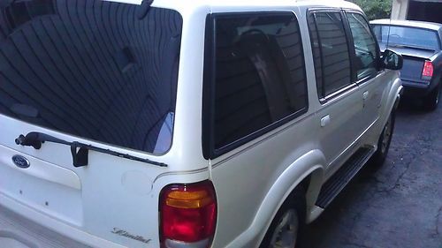 UP FOR AUCTION IS A 1999 FORD EXPLOR PEARL WHITE WITH TAN LEATHER INTERIOR..... V-6 AUTOMATIC TRANS....... SUN ROOF POWERE EVERYTHING.... AC WORKS FINE...CLEAN INTERIOR... TIRES ARE IN GOOD SHAPE AS WELL... TO THE ISSUES...MINOR DINGS AN DENTS.... WINDOWS NOT WORKING PROPERLY MAY BE A FUSE OR SWITCH/SHORT....PLEANTY OF ROOM FOR THE KIDS, PETS, OR EVEN A GOOD WORK TRUCK... THUCK IS SOLD AS IS.... ALL OFFERS ARE WELCOME...AN I MAY END THIS AUCTION AT ANY TIME...A $200 NON-REFUNDABLE DEPOSITE REQUIRED AT END OF AUCTION......THANKS EDDIE 908-590-1772