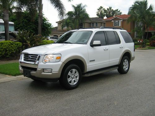 2007 Ford Explorer Eddie Bauer 4D Sport Utility, Miles 119014, RWD, Automatic Transmission, White Exterior, Tan Interior, EPA Mileage 15/20 MPG, ABS Brakes, Air Conditioning, Alloy Wheels AM/FM/CD Stereo, Auxiliary Audio Input, Cruise Control, Leather Seats, Airbags, Power Locks, Power Mirrors, Power Seat(s), Rear Window defroster, Running Boards, Tow Hitch Package, Traction Contro, GPS Nav System. Private Seller.