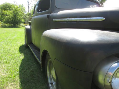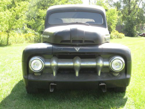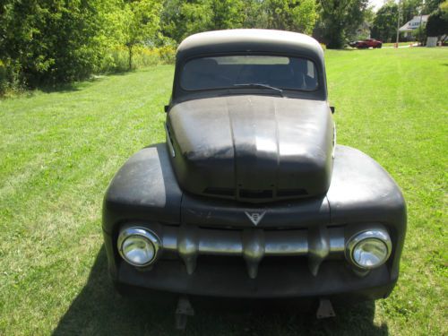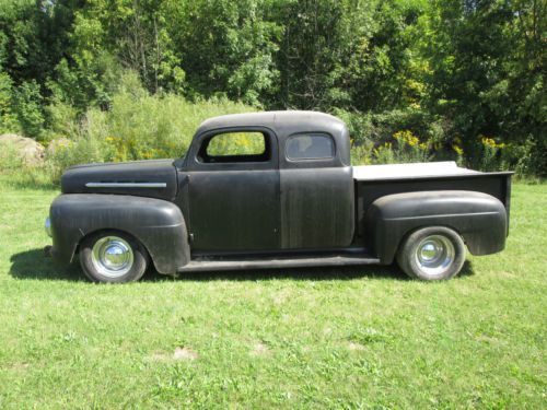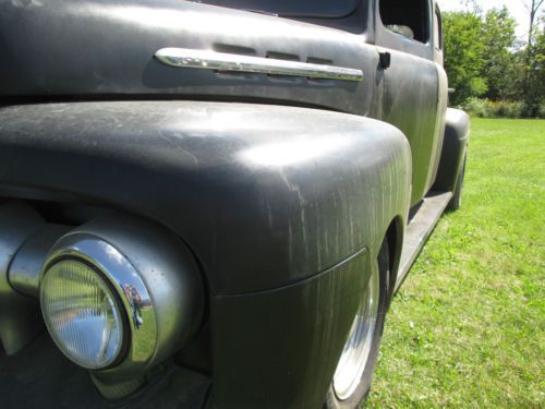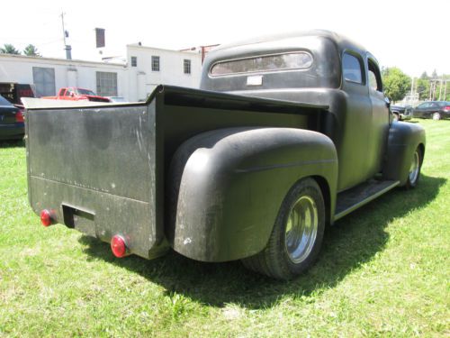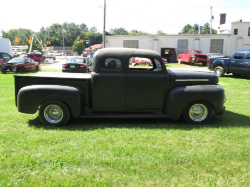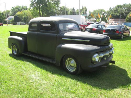 1951 Ford F-100 Ready for Finishing Your Way Good Truck - Just Needs Some Finishing Vin #f1r1kc28937 Mileage: 00000 (odometer is all new) EXTERIOR: -FLAT BLACK -Fiberglass Fenders Front - Rear -Top Was Chopped 4in -New Bed with Custom Steel Box Cover -Still Needs Some Work, BUT The Hard Work Is Done -Almost Ready For Paint Or Rat-Rod It -Cab Was Stretched 12in In Length INTERIOR: -Needs Interior and Side Door Glass -Bucket Seats -No Radio -We Have Some Inside Trim -Leather Wheel -New Gauges -New Flaming River Steering Column Chrome -New Wire Harness ENGINE: -1988 5.0 Ford -5.0 L V8 / 8 Cyl -351 Heads are on -Shorty Headers TRANSMISSION: -AOD Automatic From 1988 -4 Speed -Shift Kit Installed -Rebuilt New Trans -Lock-Up Torque Converter -Hydraulic Lock-Up DRIVETRAIN: Has Stock Frame...Has Been Notched Up For Axle -9in Ford Rear End -New Rear Leaf Springs -2in Lowering Hangers -New Front & Rear Shocks -New Exhaust -Cross Drilled Rotors -All New Brakes -New 16 Gal Fuel Tank -New Mustang II Front Suspension with Tubular A-Arms -New Rear Axles -Rack & Pinion Steering -2in Drop Spindles