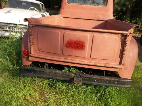 This is a 1952 F100. It needs total restoration. The body does not have alot of rust for its age but does have dents that need repair. The floors are in good shape. The motor came out of a mustang but the trans is the original. The motor has good compression and would not take much to get it to run. I do not have the drive shaft. I have a 302 motor and automatic transmission that I bought to put into this truck that I will sell separate if interested. The truck is sold as is. If you have additional questions please CALL ME, DO NOT TEXT or EMAIL. I cannot return email in a timely manner and my phone has trouble receiving text. Please call 540-556-5349. -Thanks Joe