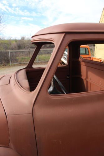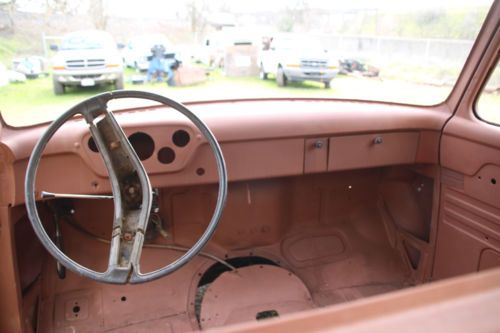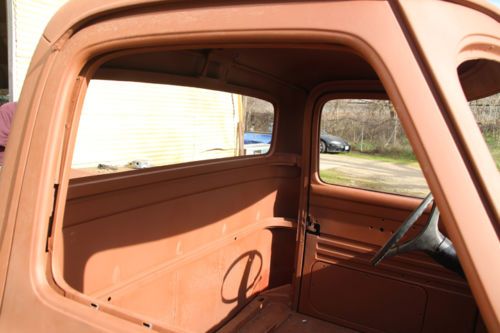 The truck consists of the body, frame and suspension as shown in the photos. It does include a functioning steering wheel. There is no drivetrain, electrical, fuel system, exhaust, interior, etc. Boxes shown in the bed do not have parts and are not included. Below are the details: FORD 9 INCH REAR END INDEPENDENT FRONT SUSPENSION, EARLY 60'S CHEVY FRONT END CUSTOM STEERING LINKAGE ROUTED TO FIT BIG BLOCK MOTOR AND HEADERS SHAVED DOOR HANDLES, SUPER CLEAN, BEAUTIFULLY DONE BEAR CLAW LATCHES INSTALLED, READY FOR REMOTE DOOR RELEASE NEW BED, OK FOR NOW, BUT SHE DESERVES OAK *This truck is in REDDING, CA. Buyer responsible for shipping. $500 deposit due within 24 hours of auction completion. Final payment due within 7 days. Cashier's check only. Item will be relisted within 48 hours of non paying bidder. No warranty, no returns* |