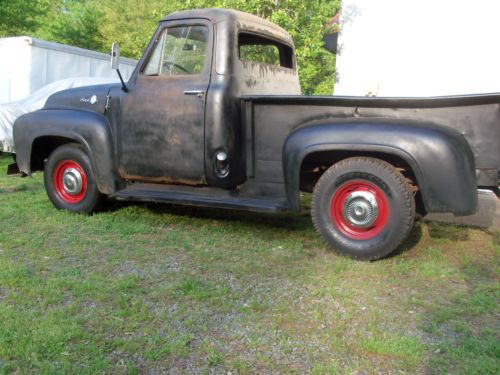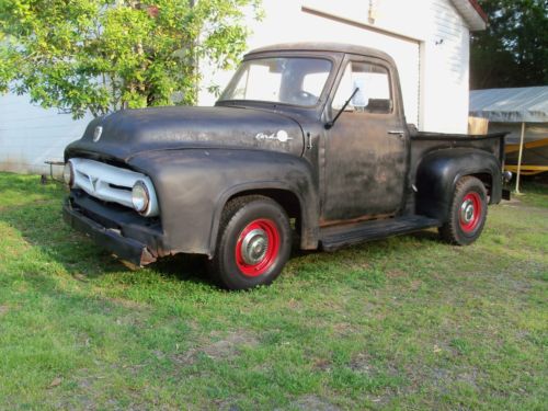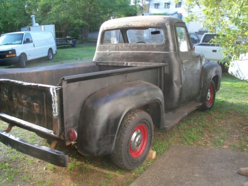 1953 FORD F-100 FAT FENDER RAT ROD PROJECT OR RESTORE,, HAS FACTORY INLINE 6 CYL. MOTOR IN IT,, STANDARD TRANS., ((( listing for father in law ))) due to health,, it is basically a 85% complete truck,, needs some metal work,, from what i can see,,but nothing that a handy guy couldn't handle,,good father &son project,,or a second truck for parts for another one ,,hasn't ran for over 15 yrs. from what previous owner said,but he said it did run when parked,,motor turns freely by hand,,,clutch still seems to grab while in gear,,it possible could run with a little tinkering,,,selling as project,, or ,,rat rod type,, selling with ga. bill of sale,,$500.00 deposit due within 24 hrs. after auction closes,,,balance due within 3 days after action ends,,buyer responsible for there shipping,, i will assist with loading,,, call if any ??? 770-249-2166 thanks !! this is a 7 day auction.