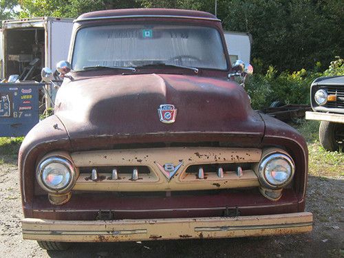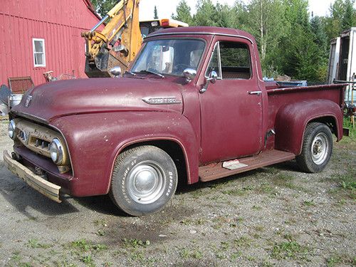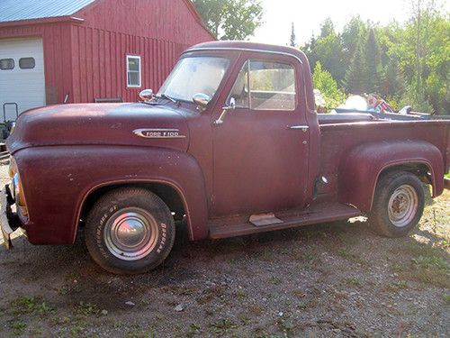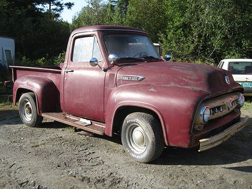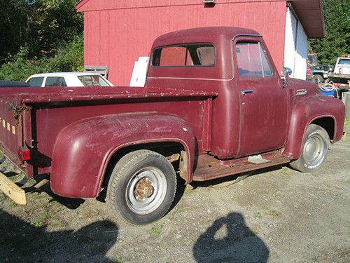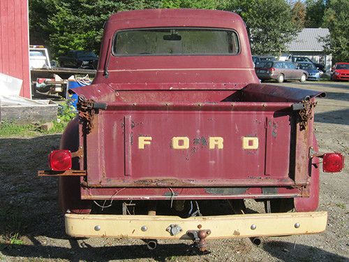 1953 FORD F100 50TH ANNIVERSARY PICK UP. 302 AUTO.EDELBROCK INTAKE AND CARB. HEADERS, DUAL EXHAUST, POWER STEERING. RUNS AND YARD DRIVES, NO BRAKES. COMES WITH ORIGINAL 5 BOLT REAR END SO WHEEL LUG PATTERN MATCHES. THIS TRUCK LOOKS TO HAVE BEEN DONE IN THE 80'S. IT'S BEEN SITTING FOR A WHILE AND NEEDS TO BE GONE THROUGH AGAIN. NEEDS ROCKERS, CAB CORNERS, SOME FLOOR WORK. RUST REPAIR HERE AND THERE. ALL THE PANELS ARE AVAILABLE ON LINE OR THROUGH MID FIFTY. THE RESTORATION PARTS FOR THESE TRUCKS ARE READILY AVAILABLE AND ARE REASONABLY PRICED. I DO 3 OR 4 OF THE 53-56 FORDS A YEAR, I HAVE 4 AHEAD OF THIS SO I MAY LET IT GO. PLAN ON A RESTORATION ALTHOUGH THIS COULD BE PUT ON THE ROAD WITH A LITTLE TIME AND MONEY PRETTY QUICK. VERMONT DOES NOT TITLE VEHICLES AFTER 15 YEARS, SOLD WITH A DEALERS REASSIGNMENT AND BILL OF SALE. IF YOU WANT A TRANSFERABLE REGISTRATION I CAN DO THAT FOR $125.00. THESE TRUCKS ARE GETTING HARDER TO COME BY IN ANY CONDITION. I RESERVE THE RIGHT TO END AUCTION EARLY DUE TO LOCAL SALE. $500.00 DEPOSIT DUE WITHIN 24 HOURS. BALANCE COULD BE A WIRE TRANSFER WITHIN 48 HOURS. I WILL ASSIST YOUR SHIPPER. ANY QUESTIONS EMAIL OR CALL GLENN 802-754-2978