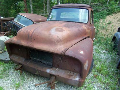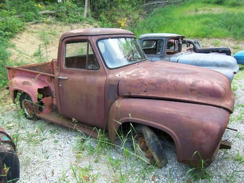 1956 ford p/u complete except engine/trans. straight-no rust thru-good glass