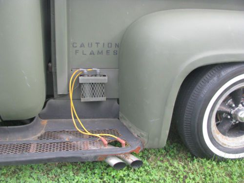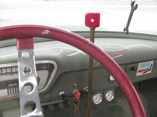 Bad News Bettie 1954 Ford F-100 Rat Truck Real water base Military OD Green 14 inch Torque Thrust with BFG Bias Plys Artwork and Stripes by Darin Allen Keller Designs Caddy Tail Lights Smooth Tailgate skin with Bullet Holes Custom Buick Holes in Hood Custom Mesh Steps Bed Floor made out of barn wood with aluminum gas tank Straight 6 with split header, dual straights and flame throwers Bad Ass Camshaft, New radiator and Alternator New Brakes and hoses New Shocks New 4x4 Steering stabilizer Rebuilt Steering Box Speedway drop tie rod ends C notch in Rear Seat - Red Vinyl Metal Flake Moon Red Metal Flake Steering Wheel OD Green Bedliner Paint Pioneer CD Player Pioneer 6X9 Speakers 3 speed in the floor Solid Truck it has been to Road Rockets in Indy, Columbus Goodguys, Speedway, The family has had a lot of fun with it. Getting rid of it to start another project. Email me if you have any questions that You need answered. |