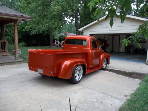 Truck appears stock, but lowered. Cab forward is original sheet metal, bed fenders and running boards are new, including oak bed flooring. All seams have been welded and smoothed. Rear fenders are 3" wider than stock. Gas tank is between rear frame rails. Frame: original rails, boxed with all custom cross members. Mustang II IFS and heists four link rear suspension with adjustable polished coil over shocks at all four corners. 20x10 Budniks in rear and 18x7 Budniks in front. Built C6 transmission and Ford 5.8L GT40 fuel injected engine. Horsepower is 380 at wheels. Interior: smooth rod doors kit wrapped in leather. Custom built seat that flips forward with complete electrical access beneath. Dakota Digital instrument cluster, Secret Audio head unit with 12JVL subwoofer, 1 piece power windows, heat and A/C, two tone leather(bone and tan).