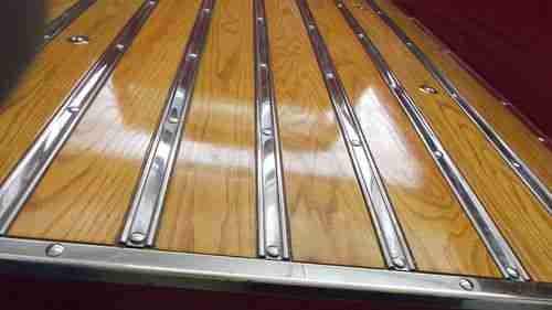 Underneath the custom bodywork sits a chassis that's been stretched five inches and a bed widened and bedecked with billet machined pieces that are supposed to look like wood. The 20-inch rear and 18-inch front wheels ape those of past Shelby Mustang models. The interior is swathed in two-tone leather with a bench seat designed to look - try to act surprised - like a Shelby Mustang.