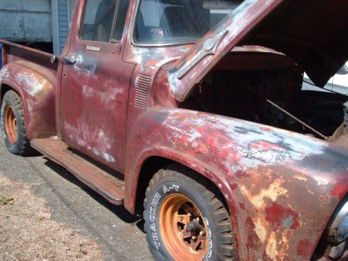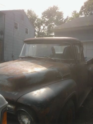 1956 FORD F-100 PICKUP SHORT BED Purchased this vehicle in 1974 from owner who had rebuilt 292-V8 engine. Manual Shift on Floor Needs full restoration. Has rust on fenders, hood and roof gutters. Engine ran when parked four years ago. Needs battery. I will try to post additional pictures in a couple of days BUYER MUST MAKE ALL TRANSPORTATION ARRANGEMENTS Unless