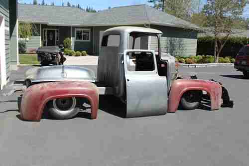 1956 Ford F100 project truck. Frame has been sandblasted. TCI F100 Mustang II IFS professionally welded with 2" drop spindles, GM calipers with 11" rotors, sway bar, TCI power steering, 9" rear end. Have extra parts. This truck is in pieces. This vehicle is for sale locally so I reserve the right to cancel this auction at any time. This vehicle does not have an existing warranty.