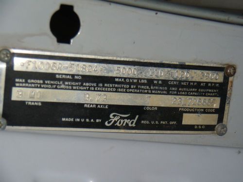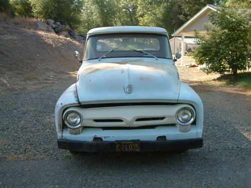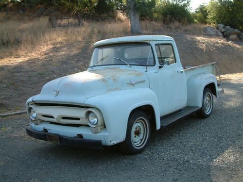 This is a clean 1956 Ford F100 pickup, all original, unaltered, in very good condition. Our family bought this pickup in 1971 and it was my Fathers daily driver until he passed in 1998. It has been in the barn since that time, was started every few months to charge the battery. It has some slight surface rust but nothing serious. The truck needs tires and brakes and could be your daily driver with very little work on it. Serious inquiries only, will gladly answer your questions if you email me. Thank you for your time