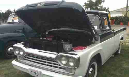 Up for sale is my beautiful 1960 Ford F-100, when i say beautiful there is no rust in the wheel wells, has an amazing drive train. a BBF 400m c6 trans and a ford 9 inch rear end, unknown gear, this truck does need a little time and love to make it %110 but she runs drives and stops great. I have one "custom cab" badge and 3 "f-100" badges 2 on the truck one extra. except the motor and trans, everything is orignal to this truck, also the Sony stereo is aftermarket but mounted under the dash and no holes were cut, can be removed in 5 minuets with no marks. there is pages and pages of stuff i know and have done to this truck so if you are truly interested contact me. also it no longer has the white wall tires they were very old and dry rotted. it has a brand new set of tires now. questions message or call or text whichever you prefer and you are welcome to look at it and drive it, need the money for another project and medic school. THIS TRUCK HAS WON AWARDS AT SHOWS. the entire cab has been undercoated ant there was NO rust holes, minor pitting in the original chrome. ( THIS TRUCK IS 53 YEARS OLD) truck is she is looking for a good home! MAKE AN OFFER ! ! ! there is NO RUST that i have fount in the wheel wells, nor bondo that i know of, please feel free to call or text 630 806 07 82