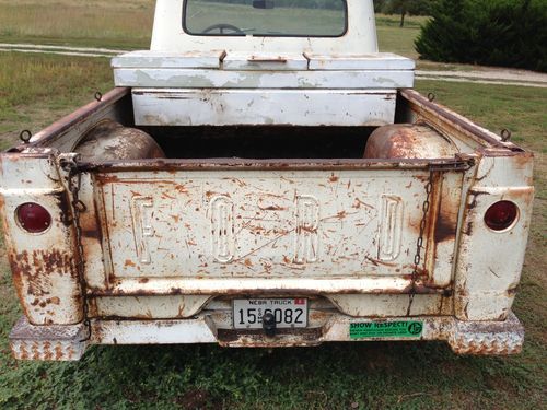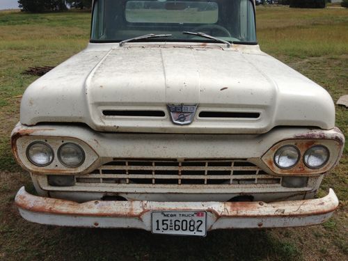 1960 F100, nice solid truck that needs a good home. It has a inline 6 cylinder that turns freely along with a manual tranny on the floor. This truck doesn't run, but looks to be complete so I can't imagined it would take much! It is a shortbox with a solid bed, only spot of rust I see are spot behind front fender where it meets the running board. If you need more pics, just let me know! I am starting this auction at $1, bid to win! Title in hand! Ryan 813-455-0702