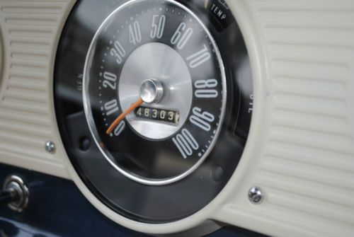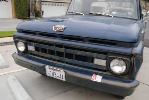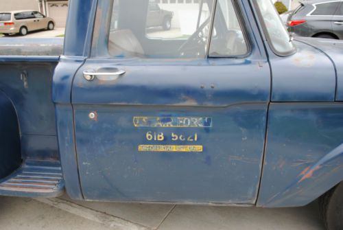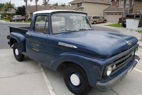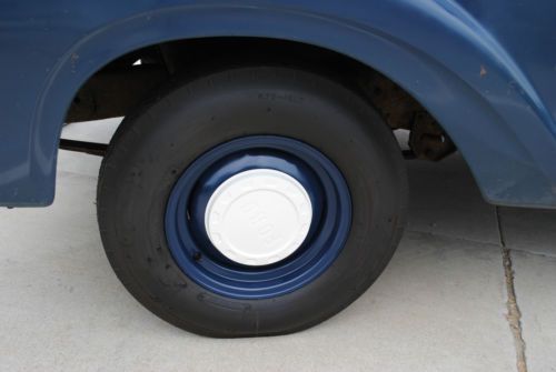 I am re-listing my 1961 Ford F-100 truck with a lowered reserve. I have completed the following work: the new headliner will be replaced by auction end, replaced sun visors, battery, battery cables, new battery hold down bracket, driver side arm rest, new Coker truck tires, sand blasted Ford wheels painted in the correct Air Force blue, installed excellent painted correct Ford hubcaps, new lug nuts on all four wheels, new reproduction rubber floor mat, new reproduction chrome outside mirror. I have done some touch up painting on the body to add color to grey primer areas. Included in the sale of this truck are four custom wheels and tires with over 50% tread remaining. I have included a picture of the wheels and tires. Also included are oak bed rails as shown in one of the photographs. I have cleaned and detailed the engine compartment. This truck runs excellent and stops well. You can drive it right now. The steering is somewhat hard at this point and I would recommend that the steering gear box be rebuilt or replaced. The windshield has a small crack on the drivers side but it is not in the field of view. In addition, there are a few rock chips in the glass, nothing serious. The engine runs cool and the instruments work with the exception of the odometer. It broke a couple of months ago so the mileage is slightly higher than 48,303. Mileage appears to be original and mostly military miles. This truck could be restored, customized, make a shop truck or rat rod it. Very straight and easy restore. Please contact me with any questions you may have regarding this truck. My name is Arnie and I can be reached at (949) 573-1139. The truck is currently licensed in CA and has no back DMV fees due. A $500.00 non-refundable deposit is required within 48 hours of the auction close. You may contact me to make final payment arrangements after the close of the auction. Please note that I am only accepting US bidders at this time, I am not set up to sell outside the country at this time. There are no warranties expressed or implied on this vehicle. The truck is being sold in "as is"; "where is" condition. Transportation of this truck to the winning bidders location is the responsibility of the winner. I can assist with the loading of the truck. Thank you for looking at my auction and good luck. |