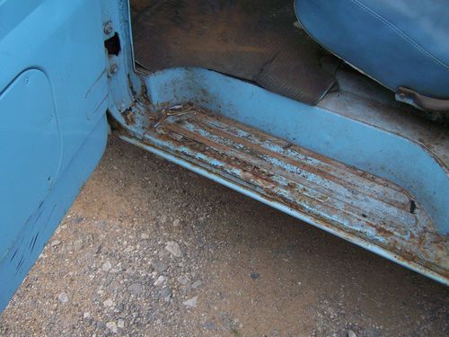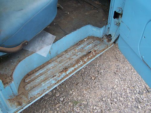 I am including a complete 1961 F100 unibody to go in this auction as a parts vehicle. (tan vehicle in pictures). The vehicle does have all necessary paperwork you would want if you wanted to make it roadworthy. This vehicle does not run but has what I would guess is an early 60's model Oldsmobile Rocket V-8 and automatic transmission. Rust wise this vehicle has some but less than the blue one does. It does have some rear passenger fender damage right above the wheel but other than that the body is straight and complete.