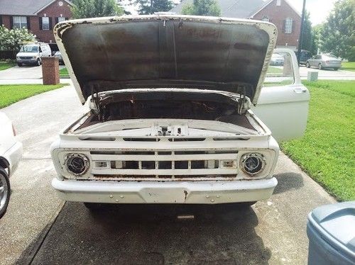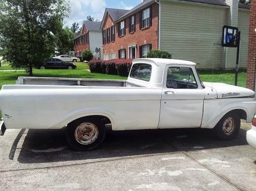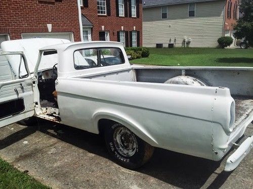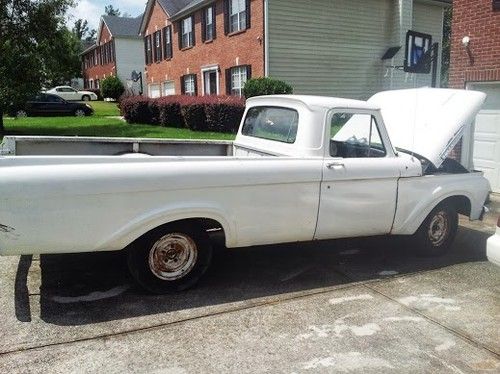 I HAVE A VERY RARE FIND*** 1963 FORD F100 UNIBODY PICKUP TRUCK. THIS WAS THE LAST YEAR OF THE FORD UNIBODY PICKUP. THE TRUCK WAS FOUND IN NORTH GEORGIA OWNED BY A OLD MILITARY GUY. THE TRUCK WENT THROUGH RESTORATION BACK IN THE 80'S AND MAINLY PARKED AND FORGOT ABOUT UNTIL RECENTLY. THE OLD GUY PARKED IT A FORGOT ABOUT IT DUE TO HEALTH ISSUES AND MOVED AWAY. THE TRUCK SAT OVER 20 YEARS IN A OLD RUN DOWN BARN AND THE OWNER NEVER KNEW JUNKIES WAS SLOWLY TAKING IT APART. MOSTLY EVERYTHING UNDER THE HOOD IS GONE BUT THE BLOCK AND TRANNY IS STILL THERE. OVERALL THE TRUCK IS SOLID, I GET GREAT REPONSES FROM PEOPLE PASSING BY AND MY NEIGHBORS PERTAINING TO THE TRUCK. PLEASE FEEL FREE TO CONTACT ME IF YOU HAVE ANY QUESTIONS. FEEL FREE TO COME TAKE A LOOK. I HAVE NOTHING TO HIDE, I HAVE TRIED TO ANSWER AS MUCH AS I CAN.