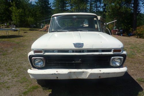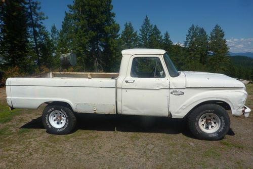 1966 Ford F100 4x4 restoration project! The truck runs, drives, starts, stops. The engine is a 390 v8, with manual tranny. It runs very strong, no smoke! The truck has the typical rust in the floors, lower fenders, and a couple spots inside the box. As you can see from the pictures it does have some dents and needs restored. It will need to be trailered. I would not take this on the road without bringing it into a shop and going through all the normal maintenance items and replacing whats needed as I went through it. Its a restoration project. It will need to be towed into town to where a semi can pick it up. This will cost about $125. A semi does not have enough room to turn around where its at. If you have questions please ask! It does have a blank clear title that I have never put in my name, so its ready for yours. The winning bidder must a place a non refundable depositof $500.00 via paypal after auction ends. Winner must pay for truck in full within 7 days of auction end. I will be out of town the 16th-18th and will not be able to answer questions. So ask soon. If you have 0 or negative feedback you must talk with me before bidding. Thanks and good luck!