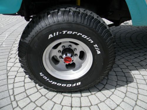 1966 Ford F-100! Classic blue and cream color scheme, factory 4 wheel drive truck however the front drive shaft has been removed. This truck has brand new 35 inch BF Goodrich All Terrains, has just been serviced in the engine and brakes, new air cleaner, new battery, new front bumper. The body has some rust spots and will need to be filled when the truck is painted. This truck is 3/4 of the way restored and just needs the new owners paint scheme and body work. This truck was picked up in Jacksonville and driven to Daytona Beach to be sold. On I-95! 80 MPH! Runs and drives great! The truck has the factory A/C blower system, also has a suspension lift. Wheels, suspension, tires are all in great shape. Truck has a CD player and Sony Speaker setup that just needs to be installed, the seats have been recently covered and match the exterior color scheme and look like new! No rips or tears or discolorations. Custome Roll bar has been installed and truck also has a tow package. Truck has a Ford 390CI V8 Big Block and a 4 speed on the floor manual transmission. Check out the pictures and give me a call with any questions!