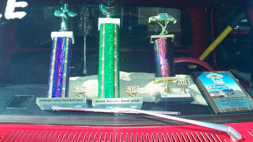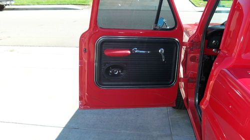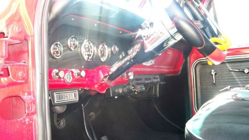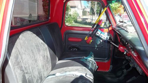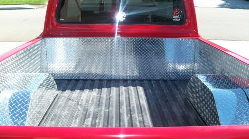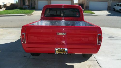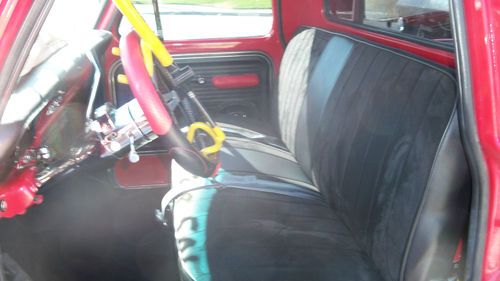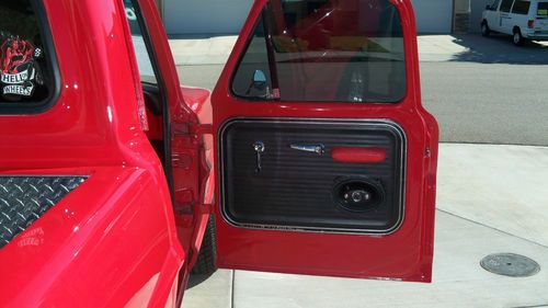 STEEL BEZEL. CHROME TILT STEERING WHEEL AND BILLET WHEEL. NEW DASH COVER ,NEW CD/STERO.COSTOM ROLL PAN W/LED LITES FOR PLATES.COSTOM DIAMOND PLATE BED SIDES AND WHEEL WELLS.READY FOR WOOD FLOOR.THE BED WAS ALL DURA LINED. THE COLOR IS A BRIGHT RED RED.... 1 COAT POLY PRIMER,1 COAT PRIMER,1COAT PRIMER SEALER,3 COATS RED ,3 COATS CLEAR COAT,COLOR SANDED AND BUFFED. ON THE UNDER SIDE IS 4 NEON RED LIGHTS,IN THE ENGINE BAY IS 2 RED LED LITES BOTH ON TOGGLE SWITCHES IN THE CAB .ALSO I HAVE NEW WELDED ALUM VALVE COVERS AND BOLTS,FLAMED AIR CLEANER.NEW 8MM RED WIRES AND CHROME WIRE LOCKS AND WIRE #S, ALSO I HAVE A SET OF FRONT DISC BRAKE SET UPS,NEW KING PINS,NEW RADIUS BUSHINGS, NOT INSTALLED YET .WELL I THINK I LISTED ALL ,THE TRUCK DRIVES LIKE A DREAM AND ONLY HAS 3080 MILES ON IT SINCE I REBUILT IT. THE ORINGAL MILES WHERE ONLY 87600 AND 0 RUST .I PAINTED THE WHOLE FRAME BLACK WHILE ALL THE BODY WAS OFF. I ALSO HAVE A CROME POWERED COATED GRILL AND HEADLITE BEZELS IN EXLELENT SHAPE WHICH COST 500.00,FOR FREE WITH PURCHACE OF TRUCK. TRUCK IS IN SOUTHERN CALIFORNIA. I'VE INVESTED ABOUT $24,000.00 INTO THIS TRUCK ,SELLING TO BUY A NEW HOUSE. THIS IS A GOOD DAILY DRIVER AND THE TRUCK IS LIKE A NEW ONE ..THE TRUCK HAS LESS THAN 3080 MILES ON IT AT THIS TIME AS I JUST GO TO THE CAR SHOWS ON SATERDAYS.