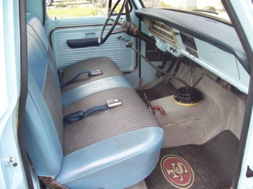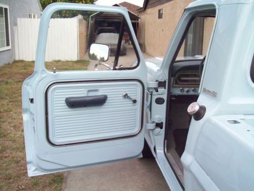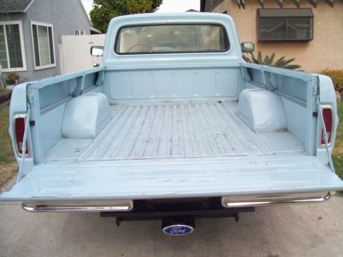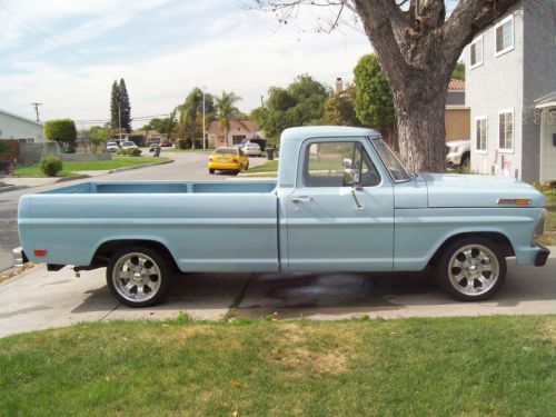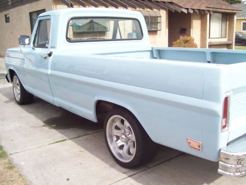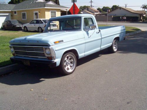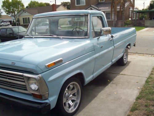 Up for auction is a 1968 Ford Truck F100 in very good used condition, it has a four speed manual transmission on the floor, 18'' MB Motoring wheel, Lowered and has a heavy duty tow hitch package. it has some miner dents and one small rust spot showing on the lower passenger side door, left front grill has some dent spot located by the indicator as seen in one of the picture and inside the bed at both corner show some rust spot. It has a AM/FM radio with cassette player but the cassette will not play. Other then that this truck runs and drive good. Item sold as is, A $500.00 Dollar non refundable deposit with Pay Pal required within 5 days after the auction end and for inspection, test drive and any other information call Franklyn at (562) 857-0388. Happy Bidding :)