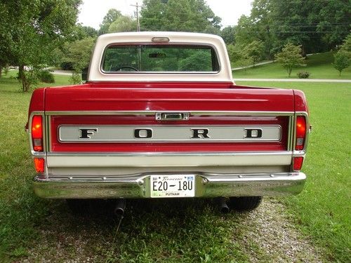 I have decided to sell my 69 Ford F-100 Ranger 2x4 shorty. I have always loved old Ford pick-ups and bought this one 1 1/2 years ago at the F-100 Nationals in TN. I am part owner of an auto restoration shop in Cookeville, TN. and was there with a 67 Ranger long bed that we entered with that we had completed in time for the show. That truck took first place in class and had a 7 page magazine article written about it. Yes I know Ford trucks. This one was for sale by an elderly gentleman that loved it and had it for many years. I bought it because it is a cool 99% rust free Ford truck and I know what it would cost to put one in this condition if there were professional restoration services needed to be done. I am too busy with other businesses to find time to go out end enjoy this truck and have put minimal mileage on it since I have owned it. It has been in temperature control storage. Since I have owned truck it has always had 93 Octane Non-ethanol fuel.