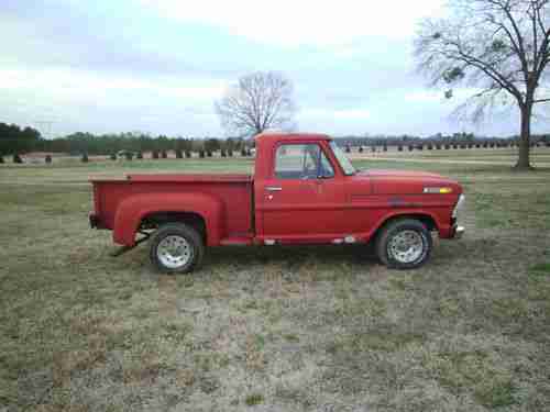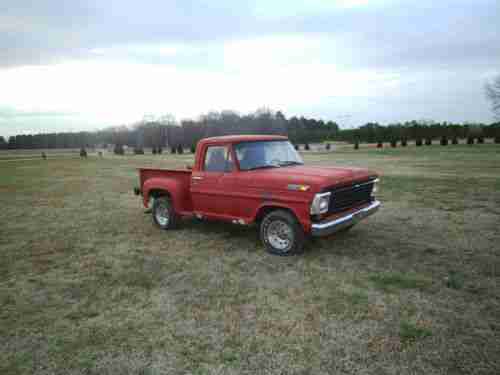 Nice daily driver or easy restoration. Fresh 390 with stock bore and crank. Heads redone. Edelbrock Performer 390 aluminum intake & breather, Holley 4 barrel, new starter, alternator, and starter solenoid. Electric fuel pump. MSD coil. No heater hoses. Headers with newer true duals. Newer C 6 auto with shift kit. Nice interior with later model seat. Custom headliner with 4 built in speakers. B & M floor shifter. Aluminum rims. Front tires nearly new, rear tires need replacing. Floor of bed is plywood with a rubber mat. I do not have the strips for the original wood bed. Frame, cab, and floorboards solid. Some small spots of surface rust. Rust hole on bottom of both fenders, 2 small places on bottom of passenger door. All 4 rust through spots patched and bondo'd, will be primed this week. Tailgate included but not mounted or pictured. tailgate good shape, tan, think it's a '75. Do not have tailgate hinges($6 ea from NPD). Good glass, windows go up and down good. Disc front brakes.Runs, drives, and stops well. Fast and loud. Fly in and drive home. Please ask any and all questions before bidding. $500.00 nonrefundable deposit due within 48 hrs of auction close, balance due in full within 10 days of auction end. Clean Mississippi title in hand. Will accept paypal, cash in person at time of pickup, check, or money order. Personal checks must clear before truck is moved. Safe, long term storage available if paid in full. Will gladly send more pictures if needed. Included with sale IF & ONLY IF final bid exceeds $3500 is a factory under dash AC unit from a '70 Ranger-all cables and wiring included. Also a factory brake booster. I will not sell the AC unit separately. Reasonable reserve. Call, text, or email with questions. Will help in any way with shipping or loading, but cost of shipping is buyer's responsibility. Thanks, Phillip. 662-425-9032