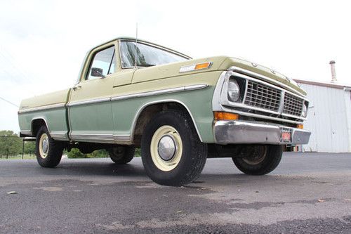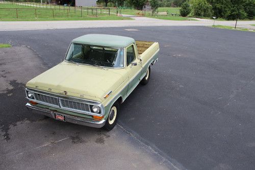 1970 Ford F100 Sport Custom Factory A/C, Auto Trans, Power Steering. You are bidding on a very nice original 1970 Ford F100 Sport Custom Short Wide. I drive this truck a lot. It drives good. Things I have done are...rebuilt engine, front end, brakes, A/C compressor, A/C Condenser, new AM/FM radio and speakers. If you are looking for a nice old truck for not a lot of money this could be the truck for you. Thanks for looking at my truck. If you have any questions call Bryan 479-530-4010